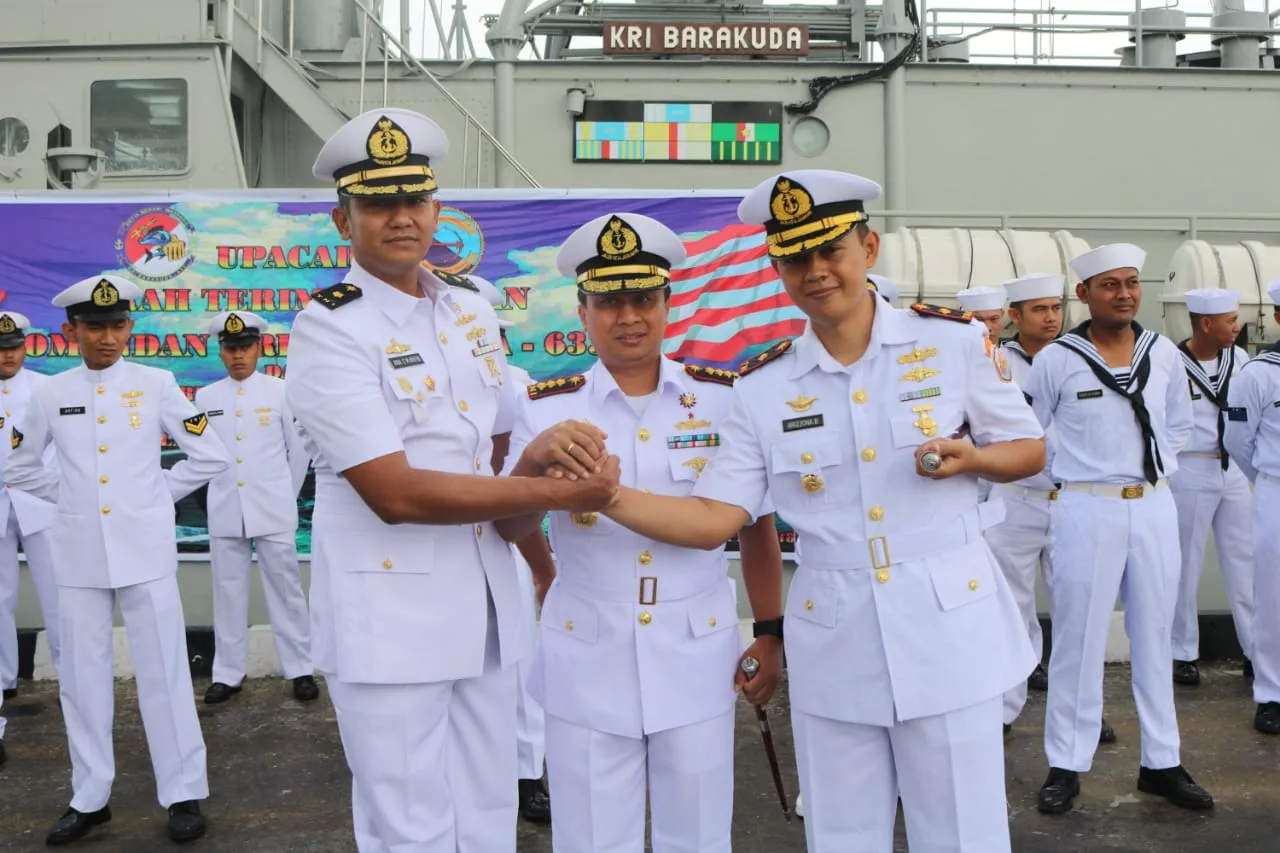 TANJUNGPINANG, DK – Jabatan Komandan Kapal Perang Republik Indonesia (KRI) Barakuda-633 diserahterimakan dari Mayor Laut (P) Mayor Laut (P) Aria Chandrayuda M.A., S.E., S.Tr.Hanla., M.Tr.Hanla kepada Mayor Laut (P) Arizona Bintara.