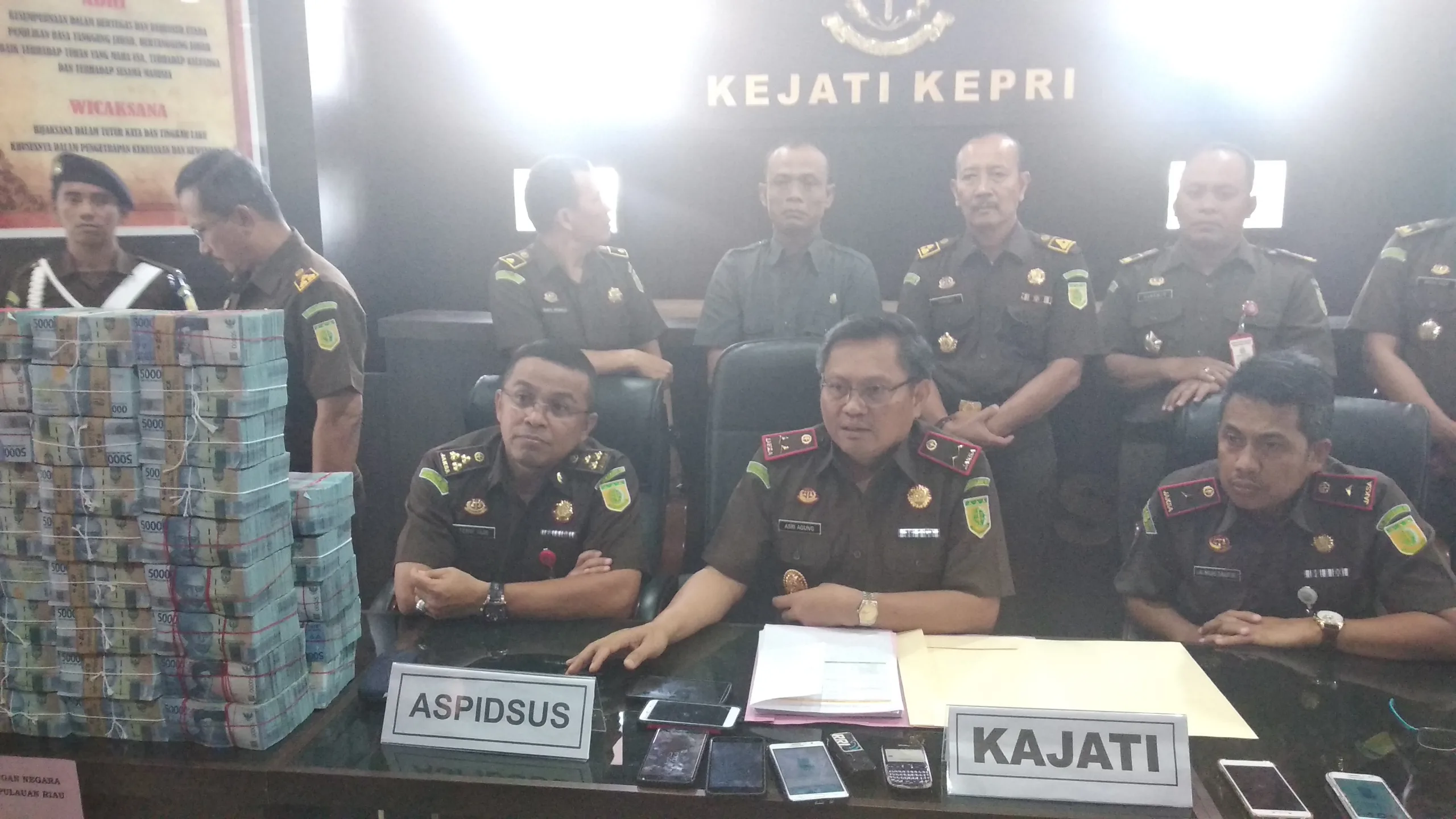 “Uang ini merupakan tuntutan Pidsus dari kasus korupsi UMRAH. Sedangkan dari tuntutan negara melalui Datun sebesar Rp. 4,7 milyar di instansi PLN Batam, BPJS, Pelindo,” ujar Asri Agung.