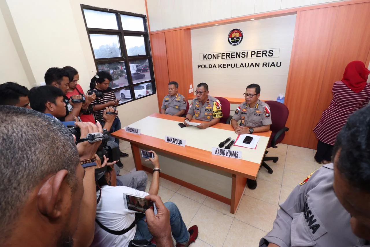 BATAM – Polda Kepri melakukan konfrensi pers terkait penyebaran hoax pemilu di Kota Batam yang dilakukan oleh dua orang berinisial K dan C melalui media whatapps. Konferensi pers dipimpin dan disampaikan oleh Wakapolda Kepri Brigjen Pol Drs. H. Yan Fitri Halimansyah, M.H. didampingi oleh Dirreskrimum Polda Kepri dan Kabid Humas Polda Kepri, Senin (22/4/2019).