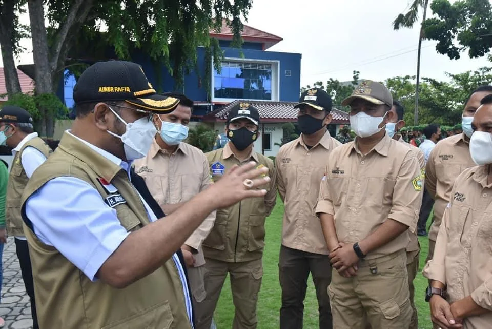 Pemerintahan Kabupaten Karimun dalam rangka upaya percepatan penanganan covid-19 dan percepatan vaksinasi di Kabupaten Karimun Provinsi Kepri, secara sigap gelar apel siaga di halaman Bupati Karimun.
