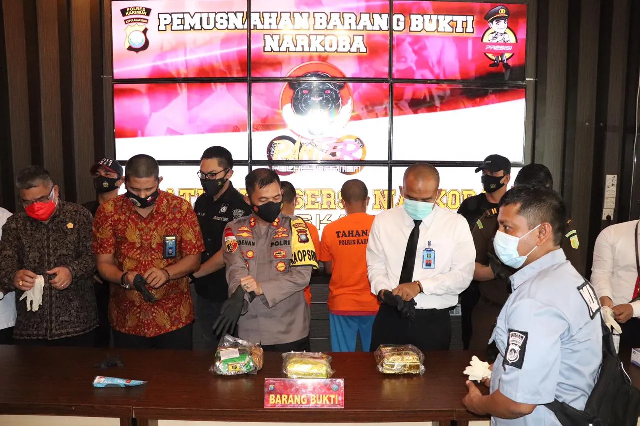 Kapolres Karimun AKBP MUHAMMAD ADENAN, SIK menjelaskan, barang bukti narkotika jenis sabu yang dimusnahkan hari ini merupakan hasil pengungkapan Tim Panther Satresnarkoba Polres Karimun pada tanggal 21 April 2021 dengan lokasi TKP penangkapan berada di lobi Hotel Holiday Kecamatan Karimun dan tanggal 23April 2021 dengan lokasi TKP di Perumahan Griya Harjosari Kecamatan Tebing.