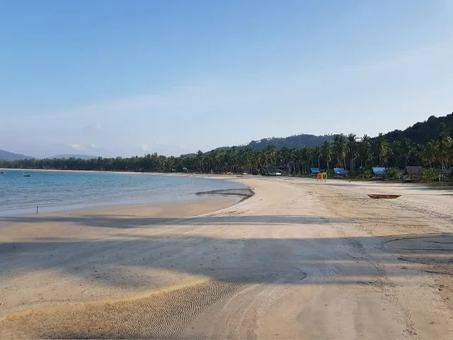 Selain dikenal dengan luasnya, bentuk pantainya yang melengkung dengan pasir putih yang bersih semakin menambah keindahan pantai tersebut.