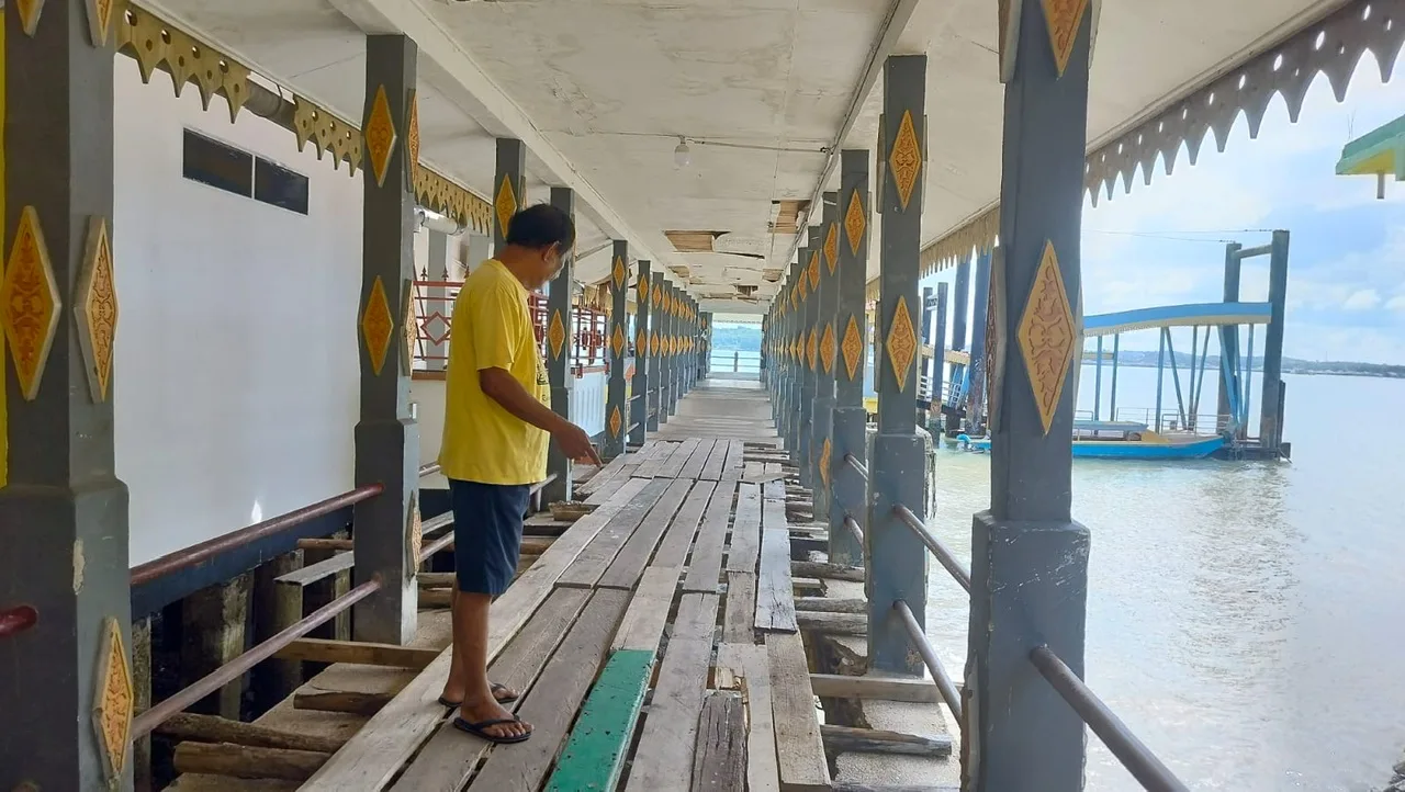 Menurut warga pelabuhan itu sudah 2 tahun menunggu perbaikan namun tidak kunjung diperbaiki.
