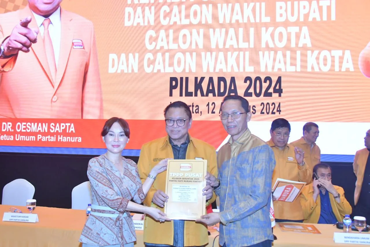 DK BATAM – Partai Hati Nurani Rakyat (Hanura) secara resmi memberikan dukungannya untuk pasangan Amsakar Achmad dan Li Claudia (Asli) agar mereka bisa mengikuti Pemilihan Kepala Daerah (Pilkada) Batam, Kepulauan Riau (Kepri).