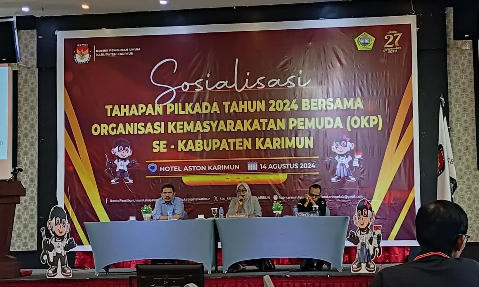 DK- Karimun -Menjelang Kontestasi Pemilihan Kepala Daerah (Pilkada) Tahun 2024 Komisi Pemilihan (KPU) Kabupaten Karimun Gencar menggelar Sosialisasi Tahapan Pemilihan Kepala Daerah kepada Organisasi Kemasyarakatan Kepemudaan (OKP).