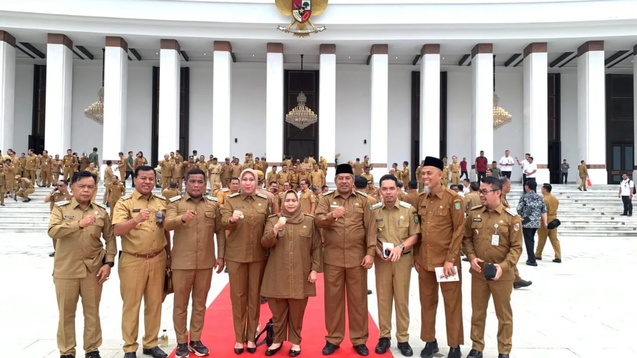 DK-INDRAGIRI HILIR-Penjabat (Pj) Bupati Indragiri Hilir, Erisman Yahya, menghadiri pertemuan penting yang diadakan di Istana Garuda, Ibu Kota Nusantara (IKN), Kalimantan Timur, pada Selasa (13/8/2024). Acara ini dihadiri oleh Presiden Joko Widodo bersama dengan 517 gubernur, bupati, dan wali kota dari seluruh Indonesia.