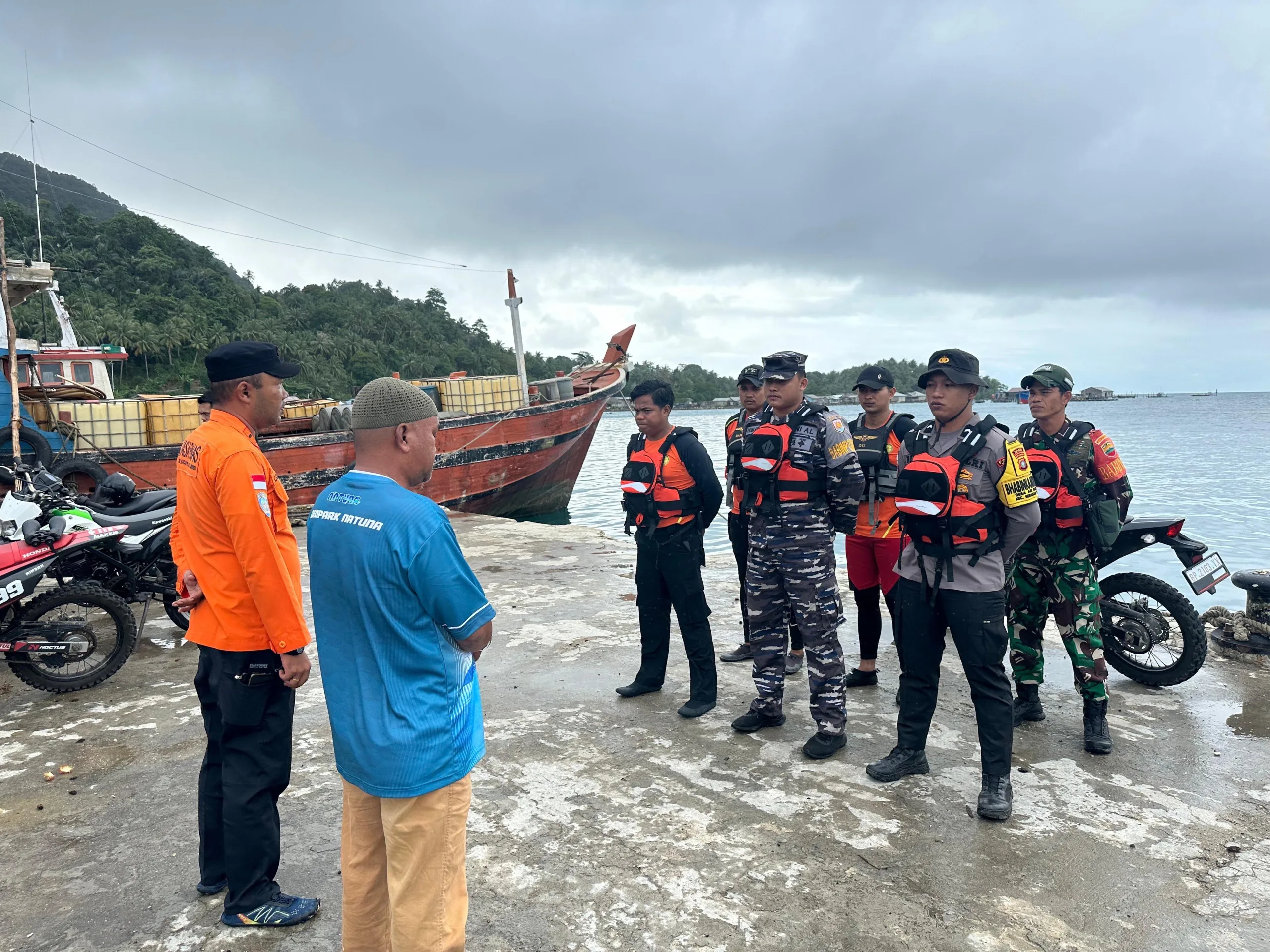 Tim gabungan yang terdiri dari Basarnas, TNI, Polri, serta masyarakat setempat, langsung dikerahkan untuk mencari kedua korban. Pencarian juga melibatkan satu unit RIB 03 Serasan dan beberapa perahu tradisional milik warga. Cuaca buruk menjadi kendala utama dalam operasi pencarian, dengan gelombang laut yang mencapai 1,25 hingga 2,5 meter serta angin kencang berkecepatan 4-15 knot. Namun, meski demikian, tim gabungan terus berusaha dengan maksimal.
