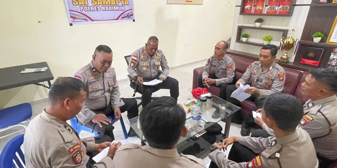 DK-Karimun-Sat Samapta Polres Karimun mengadakan Rapat Analisa dan Evaluasi (Anev) mingguan yang dilaksanakan pada Kamis (30/01) pukul 08.00 WIB di Ruang Kasat Samapta. Rapat ini dipimpin oleh Kasat Samapta AKP Rizal, S.H., dan dihadiri oleh KBO Satsamapta IPDA Ketut serta para Kanit Satsamapta. Tujuan rapat ini adalah untuk meningkatkan kinerja dan kedisiplinan anggota dalam menjalankan peran mereka sebagai pelindung, pengayom, dan pelayan masyarakat.
