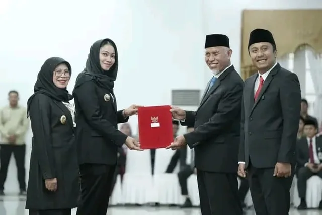 DK-Dharmasraya-Padang Bupati Dharmasraya, Annisa Suci Ramadhani dan Wabup Dharmasraya, Leli Arni resmi menerima Surat Keputusan (SK) Pelantikan dari Kementerian Dalam Negeri RI Nomor :100.2.1.3.211 tahun 2025 tentang Pengesahan Pengangkatan Kepala Daerah dan Wakil Kepala Daerah masa jabatan 2025-2030.