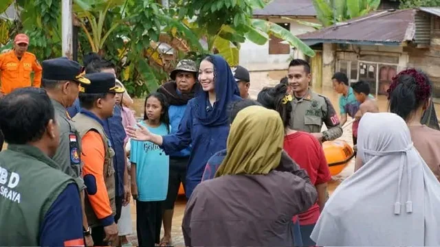 DK-Dharmasraya, 3 Maret 2025 – Bupati Dharmasraya, Annisa Suci Ramadhani, turun langsung meninjau lokasi banjir di Nagari Abai Siat, Kecamatan Koto Besar, Senin (3/3). Banjir yang terjadi akibat meluapnya Sungai Batang Siat dan Batang Piruko setelah hujan deras mengguyur wilayah tersebut dalam beberapa hari terakhir menyebabkan lebih dari 1.100 kepala keluarga (KK) terdampak. Seluruh warga terdampak telah diungsikan ke lokasi yang lebih aman untuk menghindari risiko yang lebih besar.