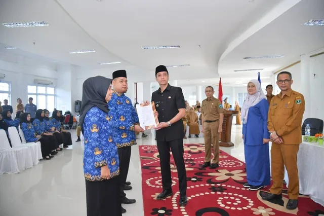 DK-Sawahlunto- Wali Kota Sawahlunto, Riyanda Putra, menyerahkan Surat Keputusan (SK) pengangkatan Calon Pegawai Negeri Sipil (CPNS) formasi tahun 2024 kepada 62 orang CPNS pada Senin 26/05/2025 bertempat di Gedung Sentra IKM Sawahlunto. Mereka yang menerima SK terdiri dari 59 orang dari formasi umum dan 3 orang lulusan Sekolah Tinggi Transportasi Darat (STTD).