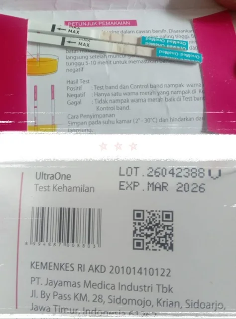 Sepulang dari Puskesmas, keluarga memeriksa kemasan alat tes. Tercantum kedaluwarsa: Maret 2026, sementara pemeriksaan 4 April 2026.